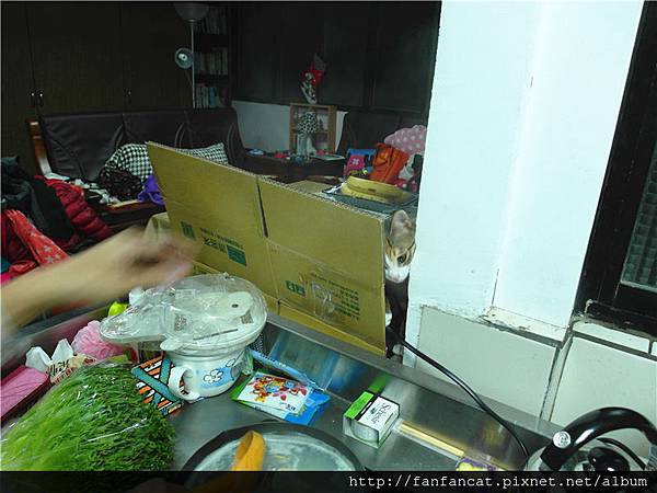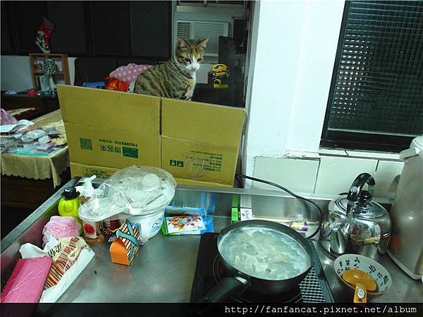 蛤仔在魚湯裡的鮮味撲鼻,讓我們家咪醬小姐一直企圖想要突破封鎖線,甘喜太陽花學運來著XDD