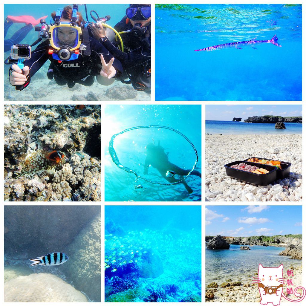 這兩天會去的潛水點是非常適合初學者或生態觀察的中之島海岸,因為這裡幾乎平靜無波,不用擔心暈浪,水質乾淨,就算靠近沙灘也很容易可以看見魚兒在海裡優游,Eco Guide Café沖繩生態潛水(這是潛水店的名稱不是咖啡店喔!!)的教練跟帆帆貓說:全日本有六種小丑魚,在中之島海岸可以看到其中的四種,和上百種其他熱帶魚類。