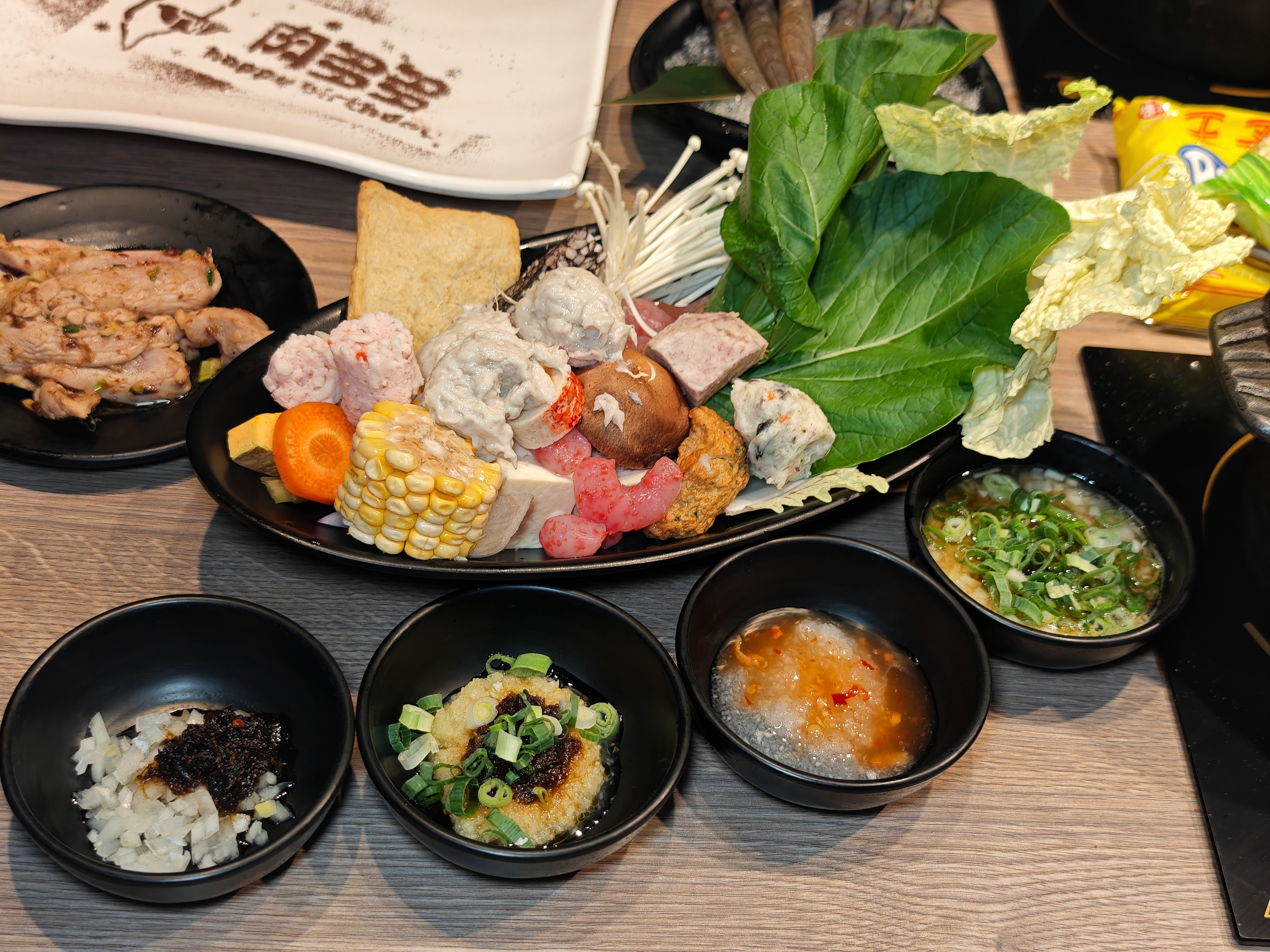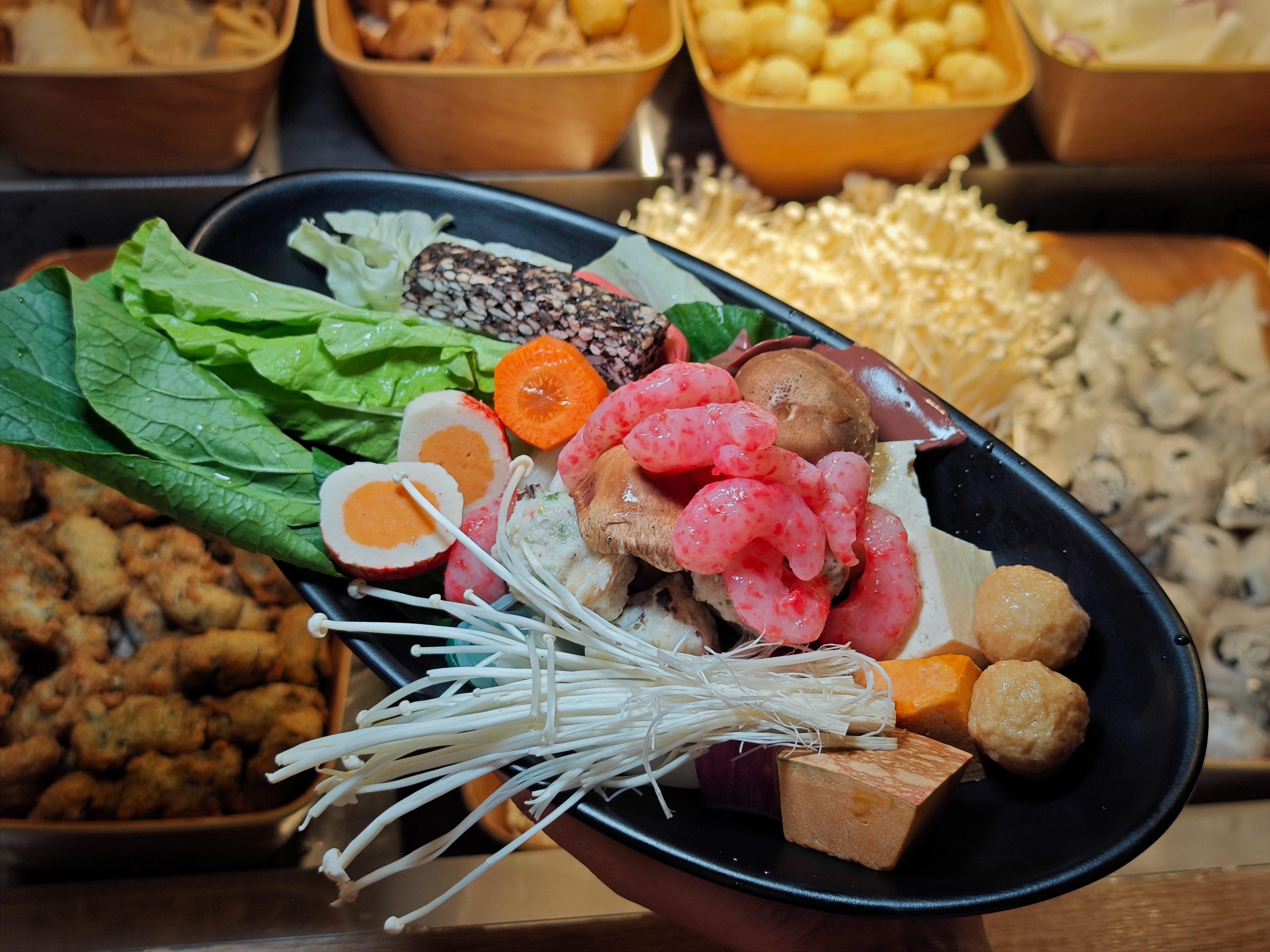 光蔬菜就超過 40 種,葉菜、菇類、根莖類、玉米、芋頭全部排好排滿,對蔬菜控來說就是天堂,火鍋料、滑類、豆腐、凍豆皮也補得很勤,你可以自由堆疊一整鍋「你的專屬火鍋宇宙」。