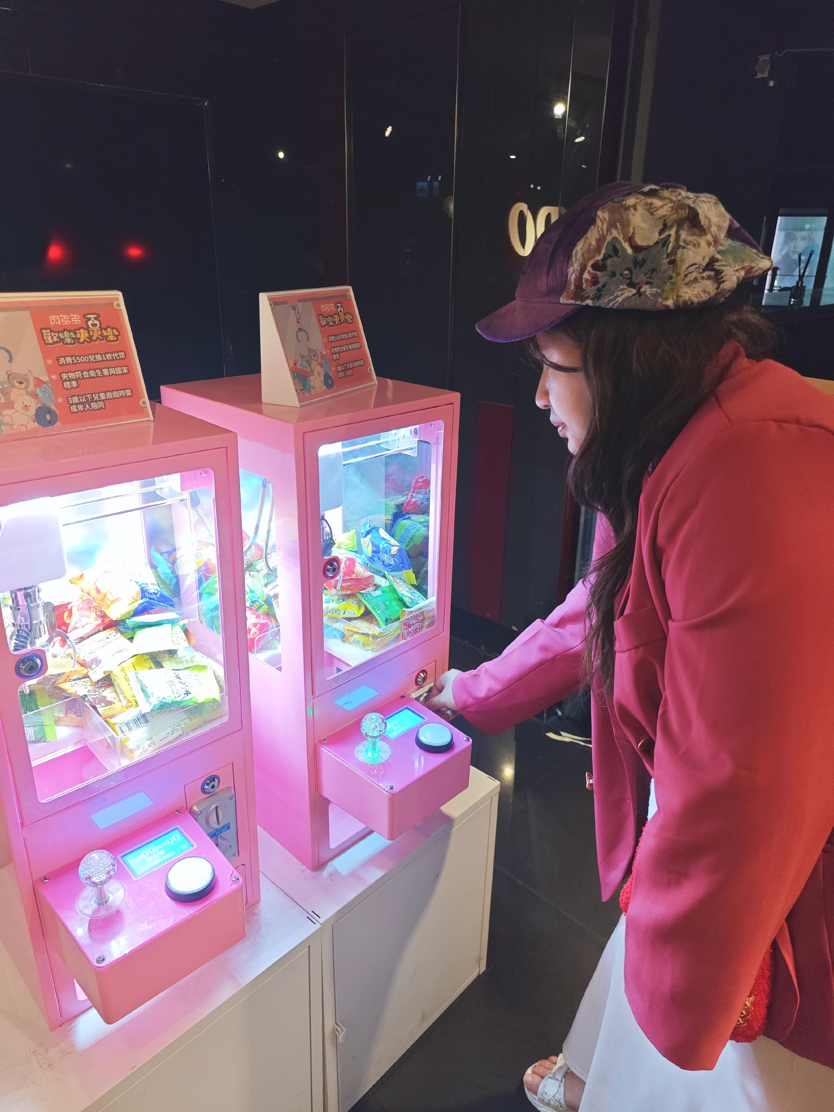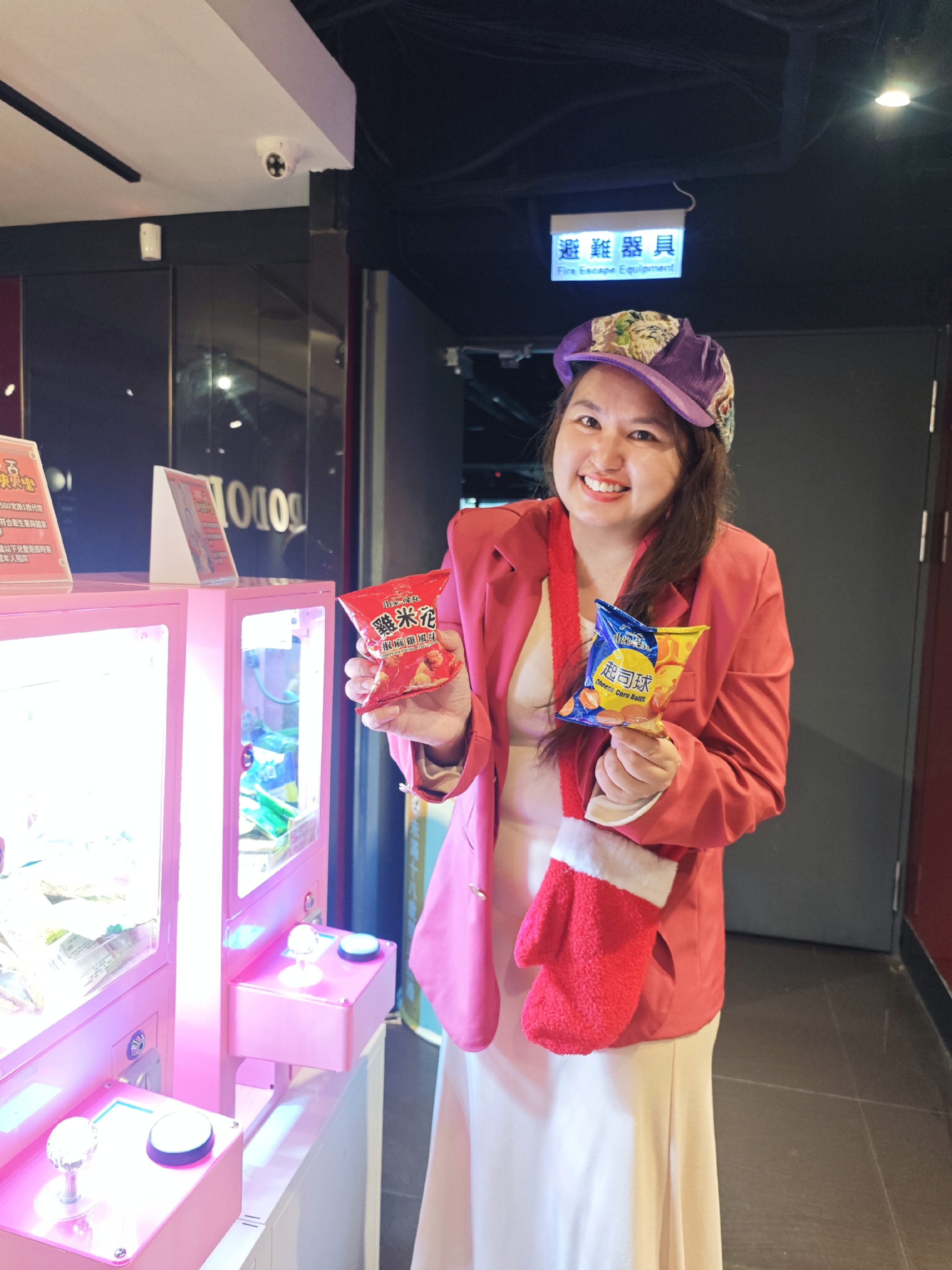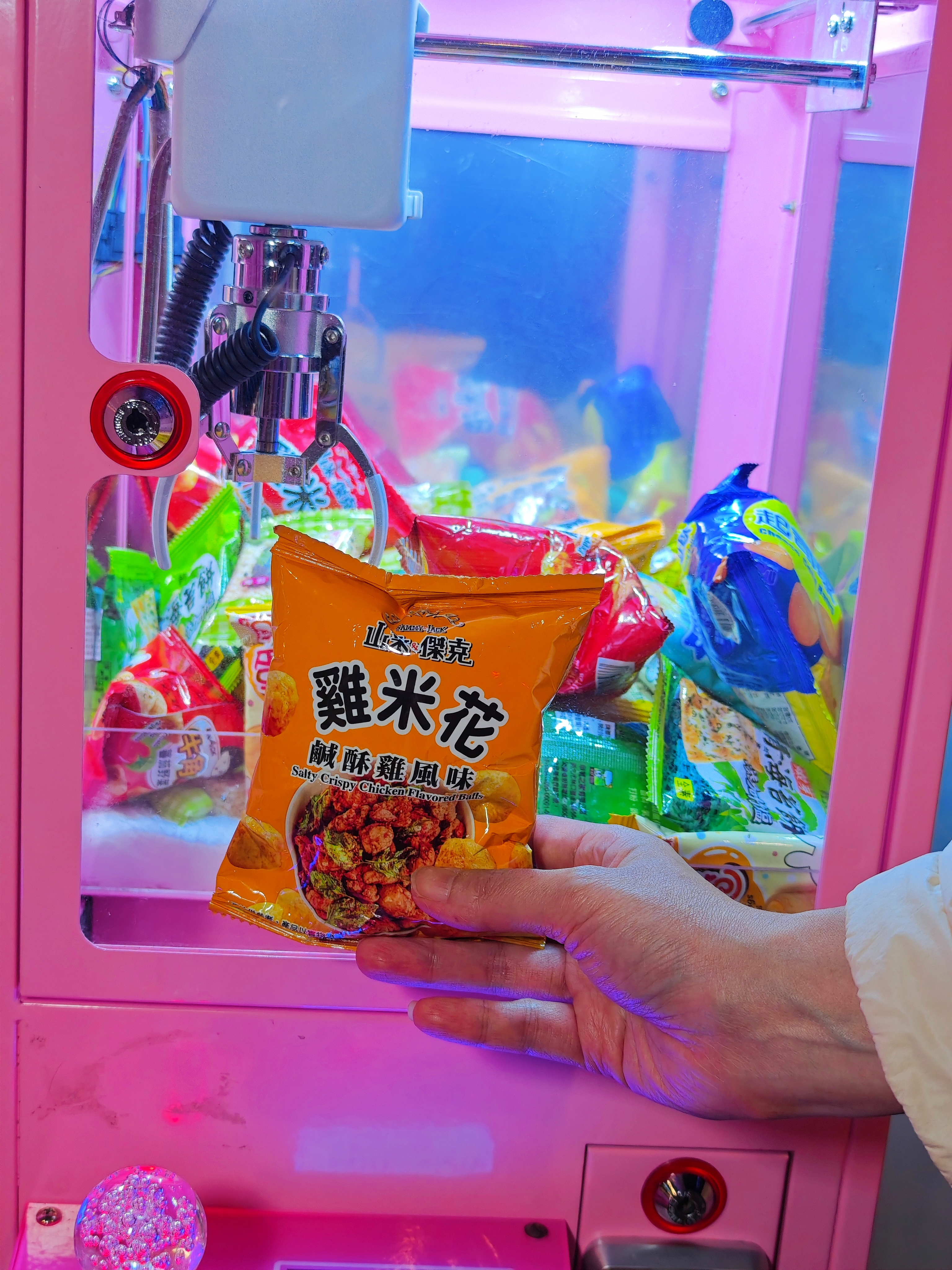 夾物台裡有餅乾、糖果、小零嘴,都是可以真的夾到、真的帶回家的那種,