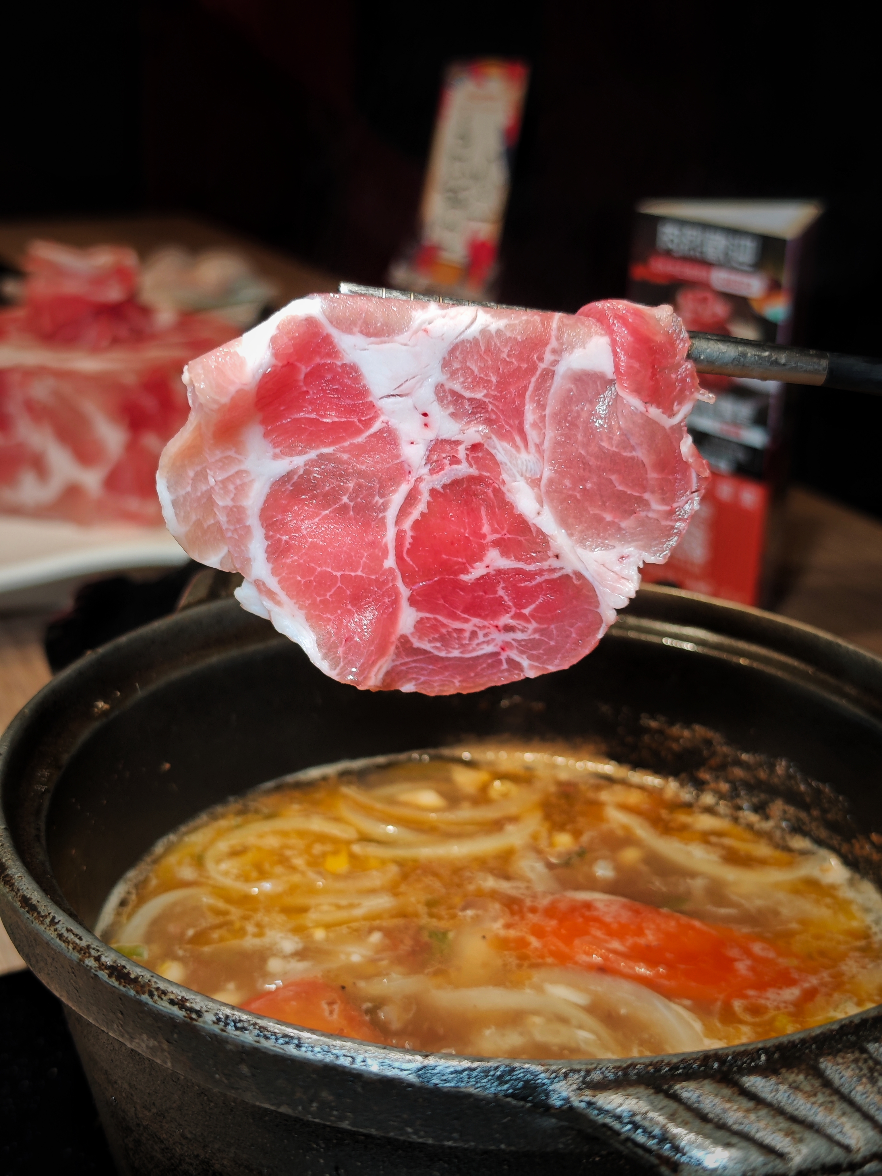 🐷 活力梅花豬 5oz —— 每一片都切得很漂亮,油脂剛剛好,涮一下超級香。
